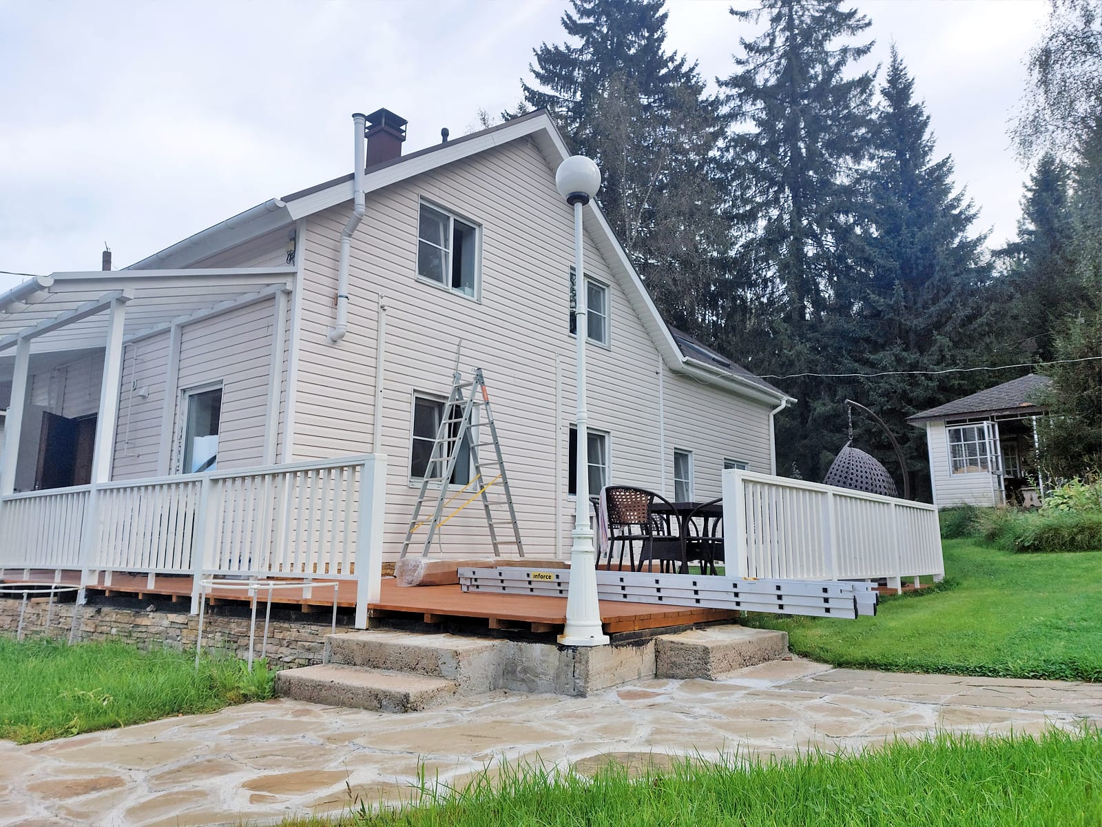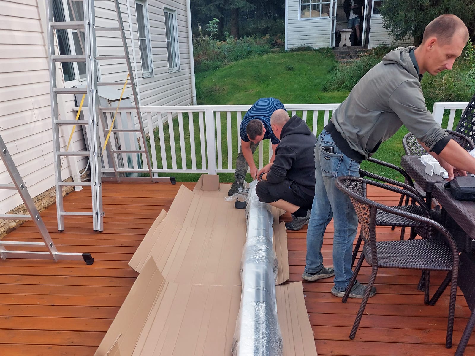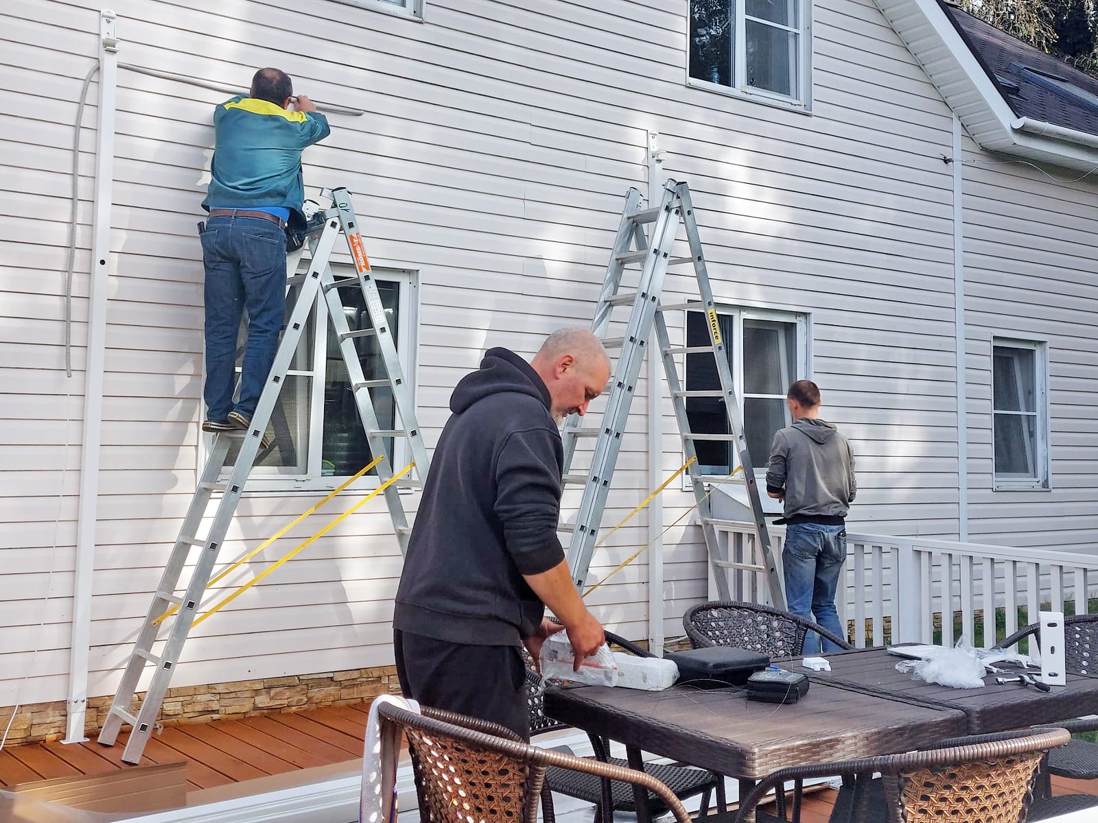 Мастерами нашей компании Маркиза.Тех была изготовлена и установлена локтевая маркиза открытого типа для загородного дома.
